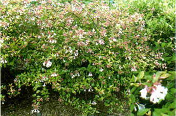 常緑または落葉広葉樹でよく分枝して茂る。葉は対生し、長さ2〜 4cmの卵形で先が尖る。質は厚く、縁に粗い鋸歯がある。枝先に筒状鐘形の淡紅色を帯ぴた自い小花を付ける |