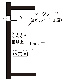 床面積の合計が100 m2を超える住宅の調理室に設置するコンロの上方に、図に示すレンジフード(排気フードT型)を設置した場合、換気扇等の有効換気量の最小値として、「建築基準法」上、正しいものはどれか。