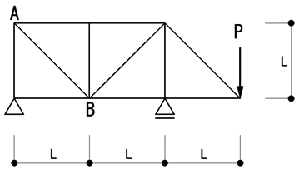 図のようなトラスに荷重Pが作用したときの部材ABに生じる軸方向力として、正しいものはどれか。ただし、軸方向力は、引張力を「+」、圧縮力を「−」とする。