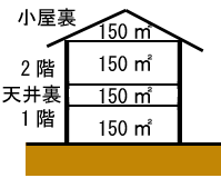 図の防火対象物の全体を一の警戒区域として設定することができる場合で、正しいのはどれか(ただし、天井裏および小屋裏は感知器を設置する場合とする)。